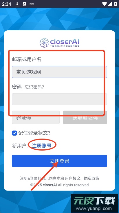 2. 在登录界面输入您的基本信息,然后点击立即登录按钮。