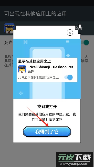6、最后设置允许宠物显示在其他应用上方,即可完成全部配置。