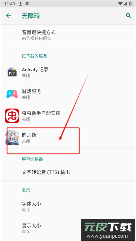2、选择开启无障碍服务选项。