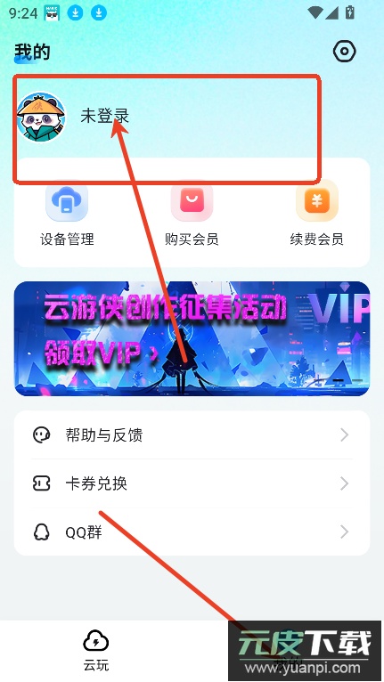 进入应用首页后,点击右下角“我的”页面,选择未登录状态。