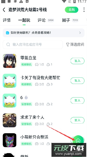 3、你可以加入他人已创建的房间进行联机,也可以自己点击小房子图标创建房间。