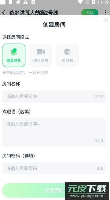 4、在创建页面设置房间的模式、名称与密码等信息。