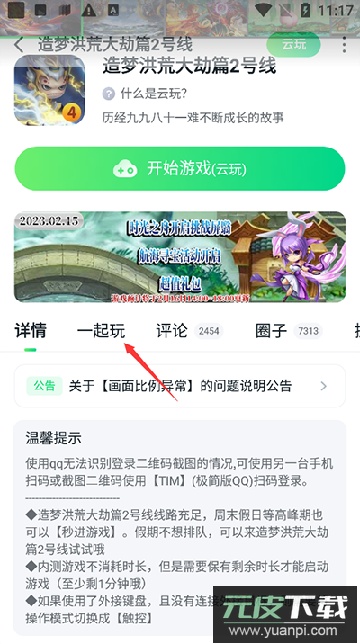 2、进入游戏详情页后,找到“一起玩”功能并点击。