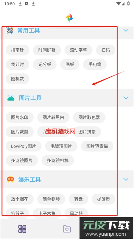 2、首页分类展示了图片处理、娱乐等多种工具选项;