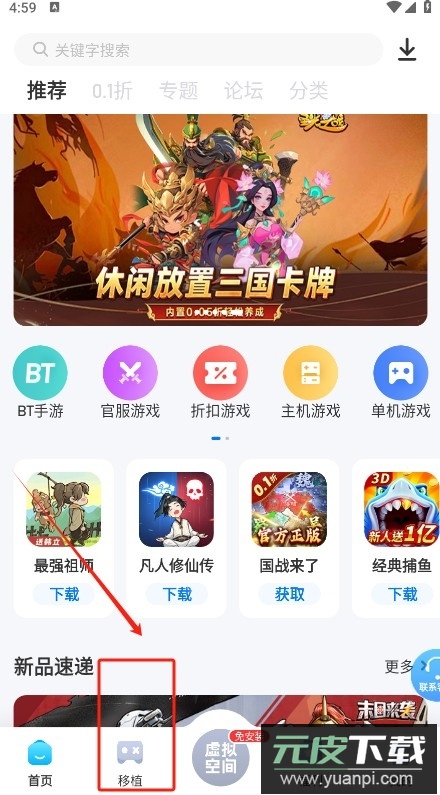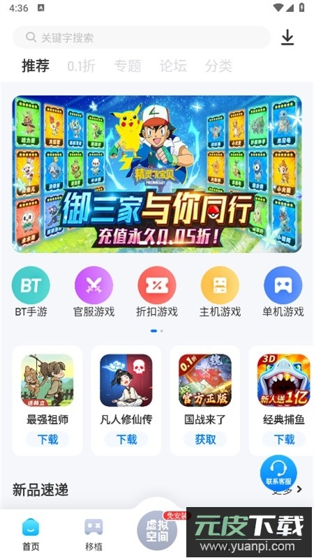 2、打开应用进入首页,可见各类热门游戏,界面按专题分类,便于查找;