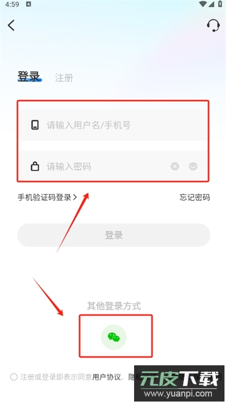 3、输入手机号与密码完成登录,也可选用微信快捷登录。