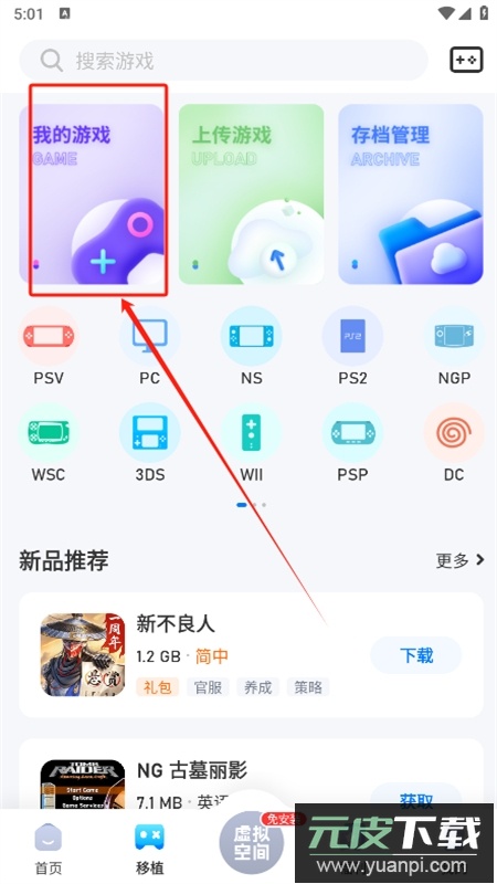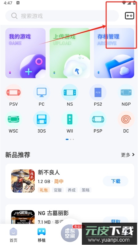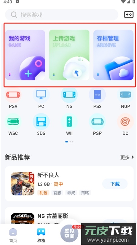 3、点击移植栏目,可挑选不同模拟器的移植游戏下载试玩,并管理存档;