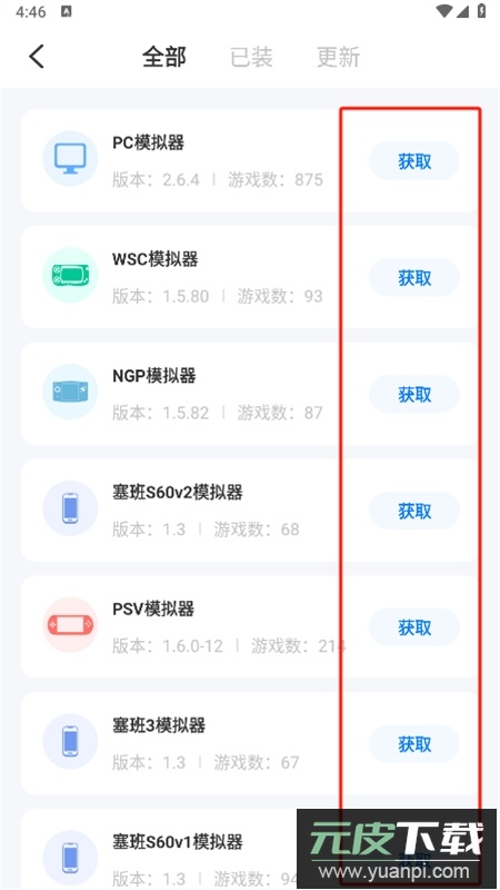 6、最后选取需要切换的模拟器,点击获取即可完成更换。
