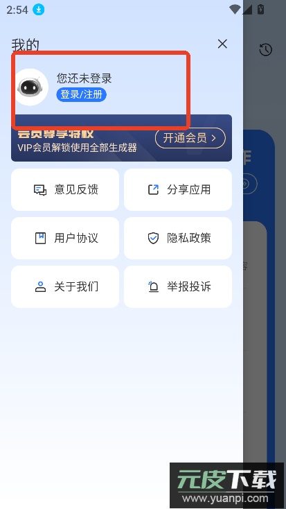 在弹出的菜单中选择登录或注册选项。