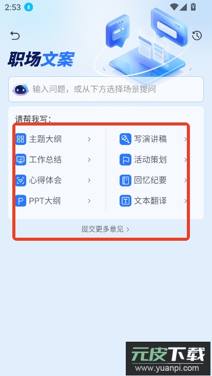 例如进入职场文案板块,选取需要的文案类型,输入关键词。