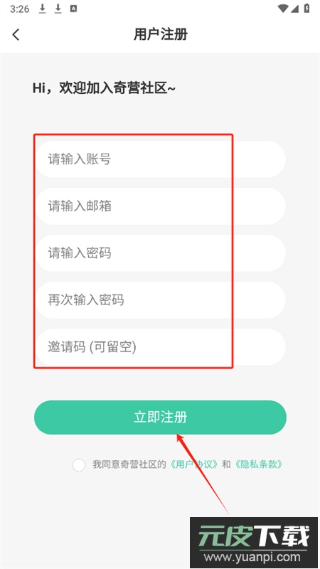 4、按要求填写账号、邮箱及密码等信息,最后点击立即注册即可完成。