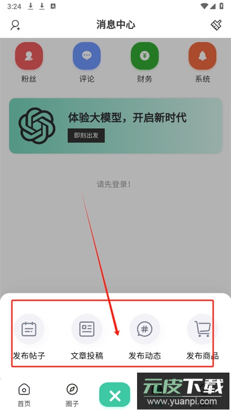 5、还能点击底部加号,自行发布帖子、动态或进行文章投稿。