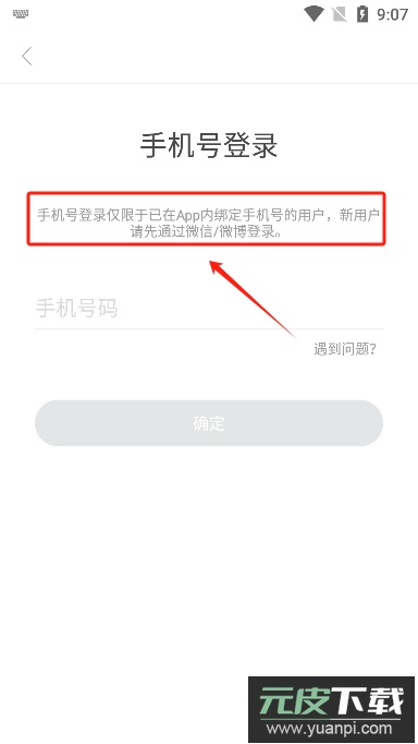 3、需要注意的是,手机号登录功能目前仅限已在app内绑定手机号的老用户使用;新用户首次登录仍需通过微信或微博完成。
