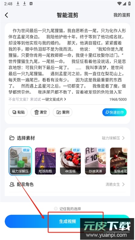 6、系统将自动关联近期热门内容元素,点击生成视频按钮便可快速制作。