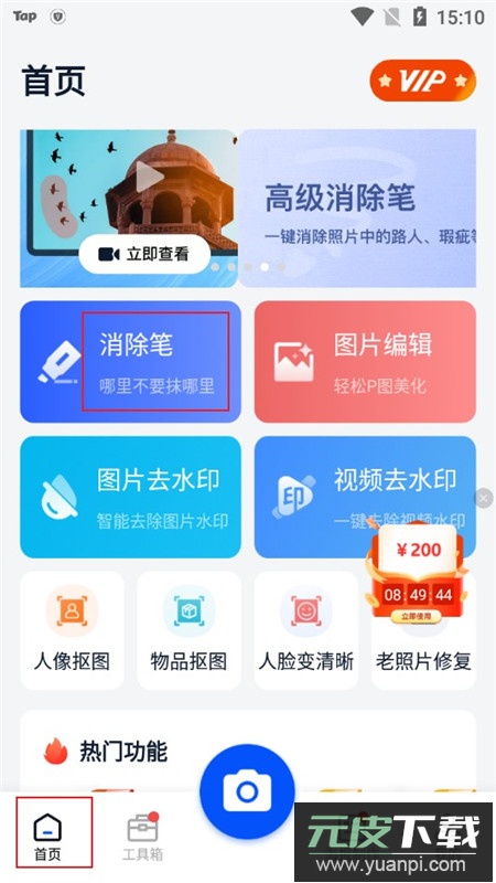 2、打开APP进入软件主界面,找到消除笔功能入口;