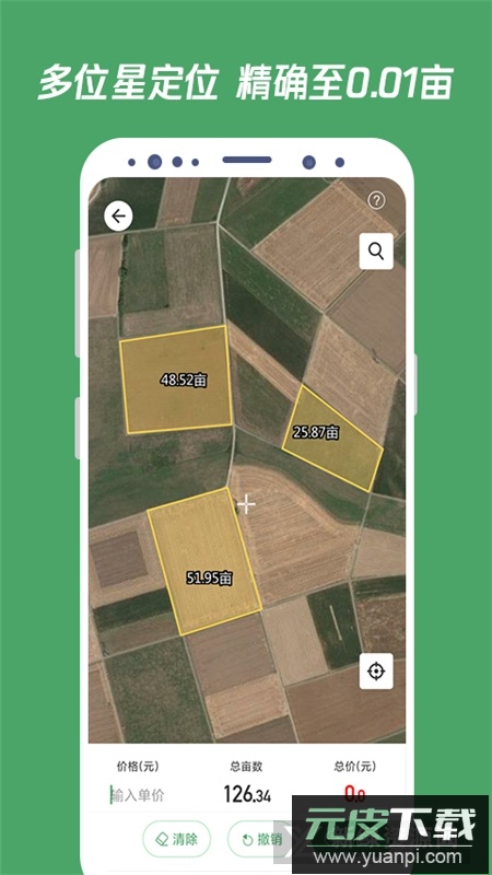 1.测田模块:地图可选超清卫星地图或者普通卫星地图;