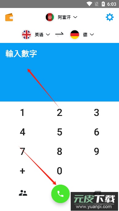 3、选定语言后输入电话号码并拨打,即可开始实时翻译对话