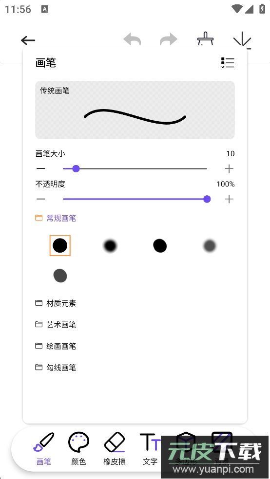3、应用内准备了丰富的画笔类型与绘画材质供用户选择。
