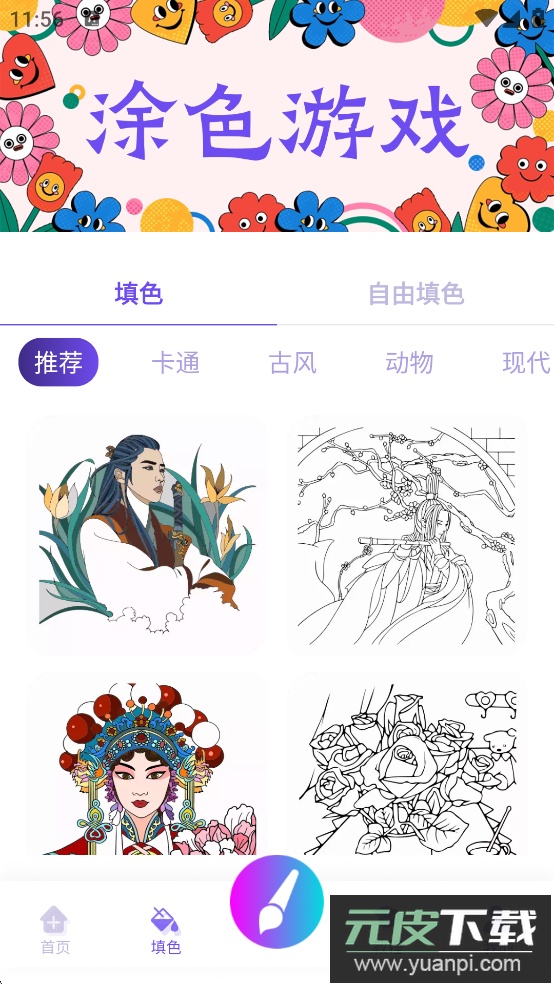 4、填色板块分为色块填色与自由填色两种方式。