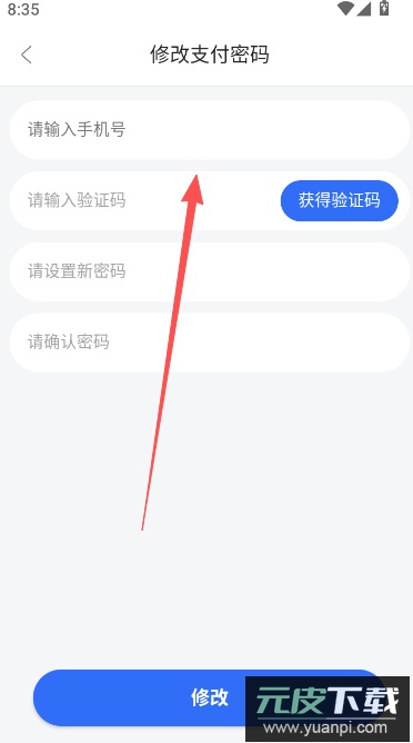 3、输入手机号码及短信验证码,即可完成支付密码的修改操作。