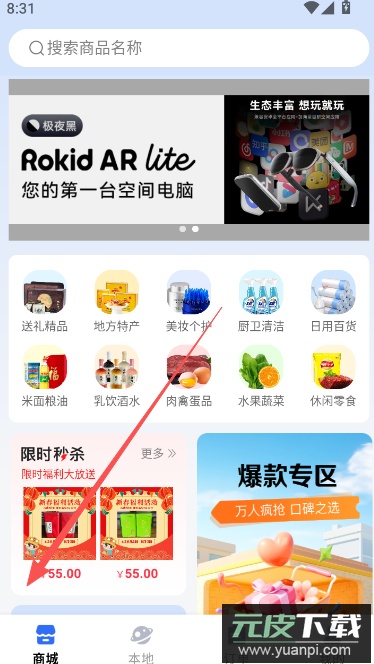 3、使用本地版块前需先获取定位权限,权限开启后,该页面会推送附近的商品活动信息,方便随时参与。