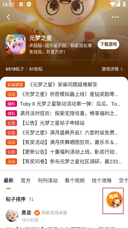 3.浏览页面里不同的板块和分类,选你想要发布帖子的对应板块,点击右下角的发帖按钮;