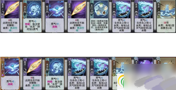 1、元婴过渡:可选用水阵、聚灵丹、腾浪、潜遁、汹涌、流转、飞梭/其他金系卡牌、铁骨;