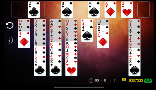 游戏使用一副52张的扑克牌,所有牌面朝上分成8列。你需要通过移动纸牌来达成目标;界面左上方设有四个临时存放格,用于暂时放置单张牌;右上方则是四个回收格,用于构建完整的牌组。