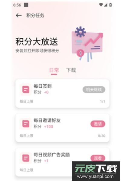 3、按照页面列出的积分任务要求逐一完成即可,每天邀请好友获取积分的上限为30人。