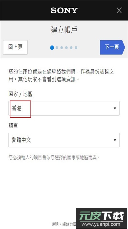 7、国家和地区选项选择香港,之后点击右上角的下一页按钮;