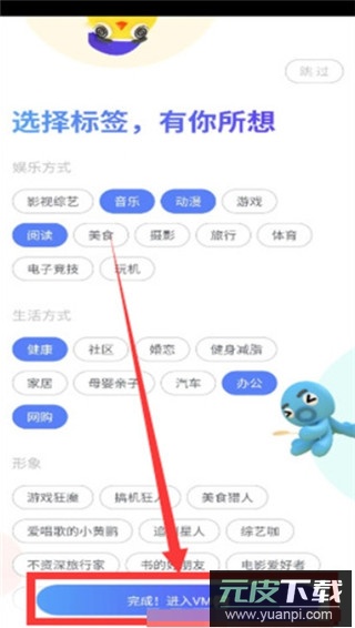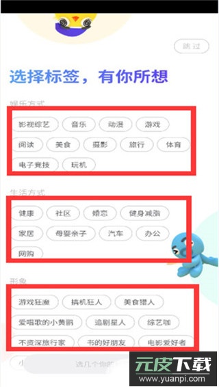 4、进入标签选择界面,根据个人兴趣勾选娱乐方式、生活方式等分类;