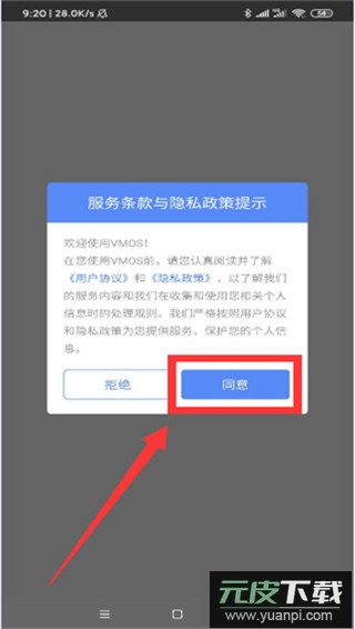 3、阅读服务条款与隐私政策提示,确认后选择同意继续;