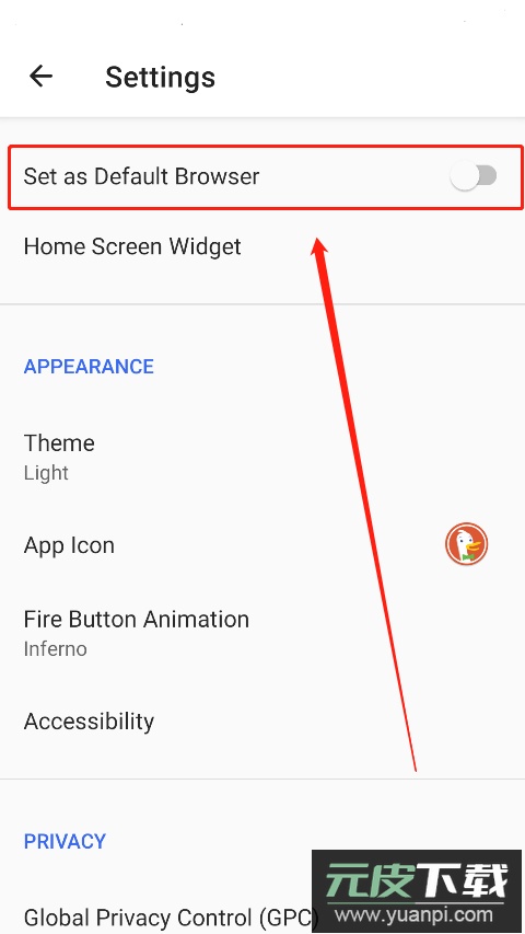 2. 进入设置界面,点击“set as default browser”将其设为默认浏览器;
