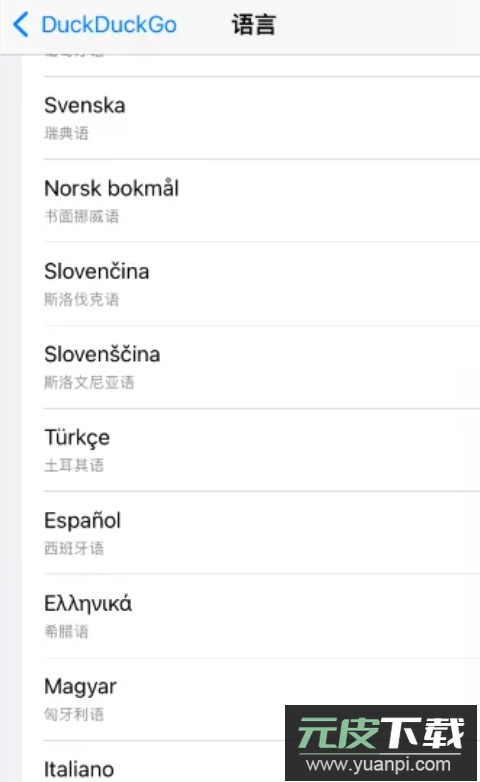 4. 在语言列表中滑动,目前版本未提供中文选项,但您可以从其他可选语言里挑选一种熟悉的进行设置。
