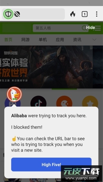 2. 接下来可以在顶部搜索框输入网址,尝试访问您常去的网站,应用将自动屏蔽跟踪器,提升浏览安全性;