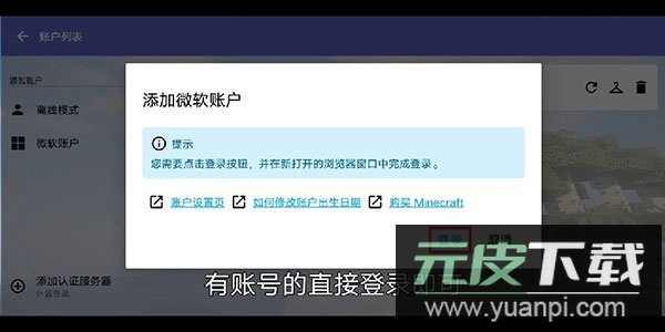 微软账户:使用正版账号进行登录验证;