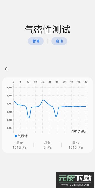 3. 按照提示按压屏幕开始测试;请注意观察界面显示的极差数值,该数值越高通常表示气密性越不理想;需特别提醒,此项检测请勿在水中进行。
