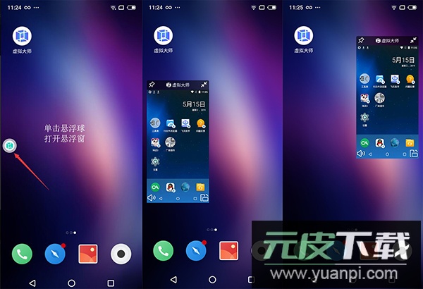 2、在真机界面点击悬浮球即可唤出窗口,单指可拖动悬浮窗位置;