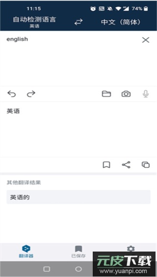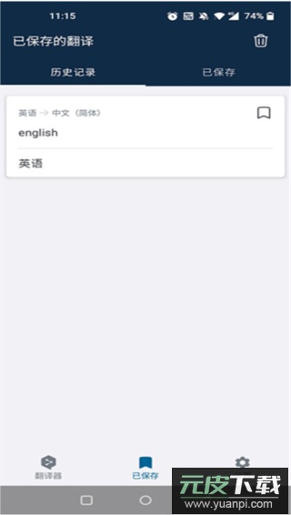 3、用户可在“已保存”功能板块内查阅以往翻译过的英文或其他语言记录。