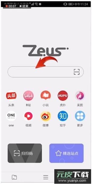 1、打开应用后,可在主界面搜索框直接输入关键词或网址;底部区域设有常用功能快捷入口。