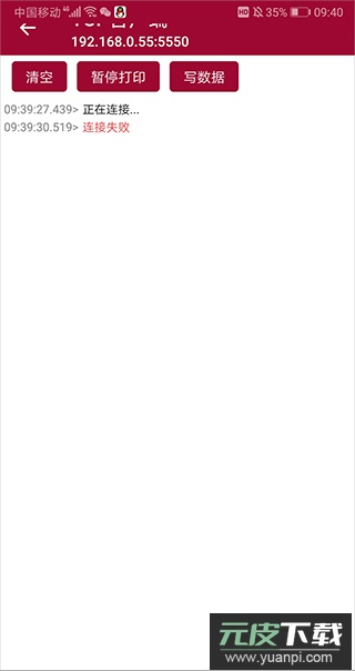 5、若连接失败,界面会提示连接异常,且无法接收数据。