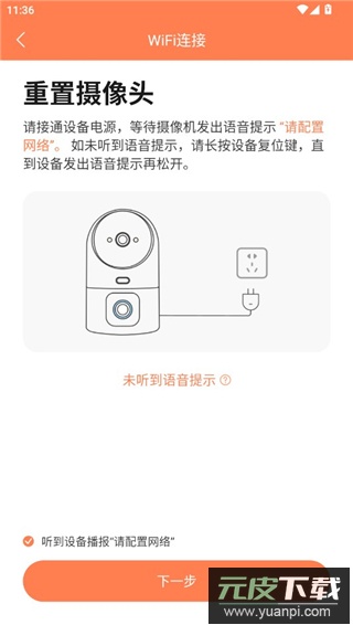 4. 接通设备电源,等待设备发出语音提示后,点击下一步继续。