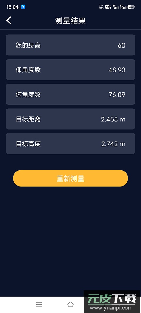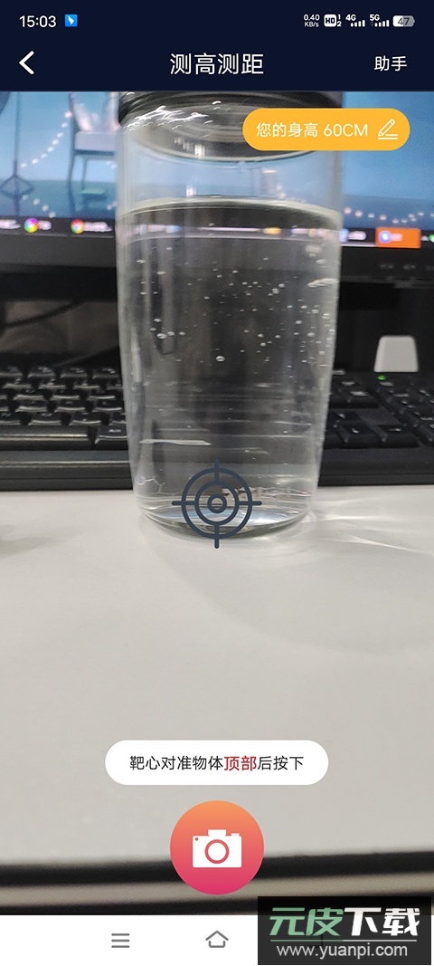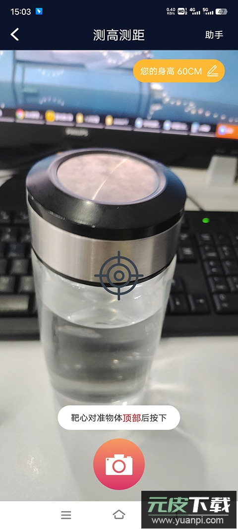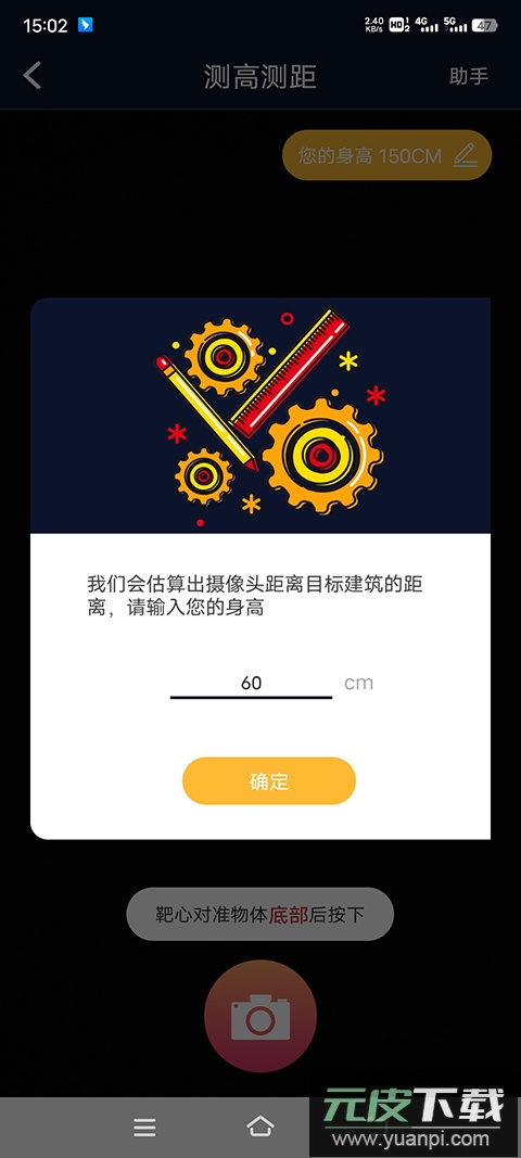 2、输入身高后对准物体底部,移动至顶部即可测算高度,适合测量身高或远处建筑;