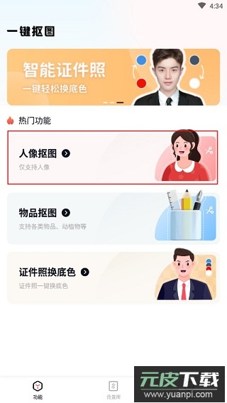 首先熟悉应用的主要功能,例如人像抠图、物品抠图和证件照换背景。