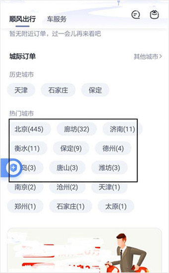 5、选定目的城市,即可查看并选择合适的订单接取;