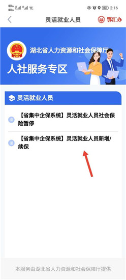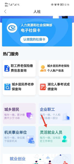 接着在菜单中进入“灵活就业人员”板块。