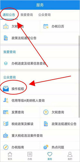 2、选择所需服务类别,点击“操作规程”;