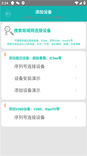 3、能够搜索雄迈超级看看、ICSee、宏视V380、XiaoVV等品牌设备,支持实时视频观看、双向对讲、视频截图、录像查看与下载等操作