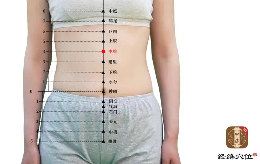 位置在上腹部,肚脐往上4寸,大概是胸骨下端和肚脐连接线的中点位置。这个穴位有健脾和胃、消食导滞的功效,能提升脾胃运化水湿的能力。