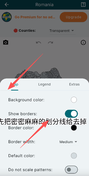 4、接着打开设置列表,将地图上所有可见的边界线条隐藏,从而获得完整的架空地图效果。